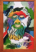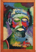 op doek van achtereenvolgens: Zeno, Parmenides, Heraclitus, Pythagoras,